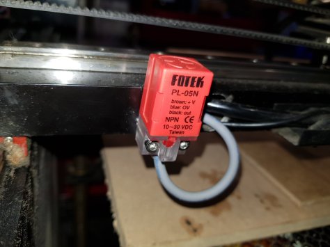 On turning it on the cross axis would try to home and end up clonking dreadfully as the limit switch was broken. I knew about this but wanted to see if I could try to fire the laser but I failed. Very soon though a new hall effect limit switch arrived and was fitted. The original and the new one looked like this